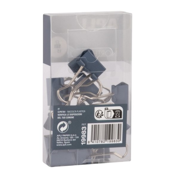 Klipy do dokumentów APLI Up North, 19mm, 15szt, pudełko z zawieszką, niebieskie