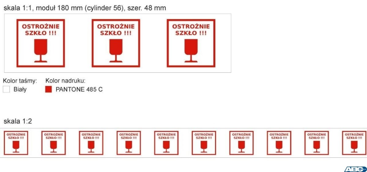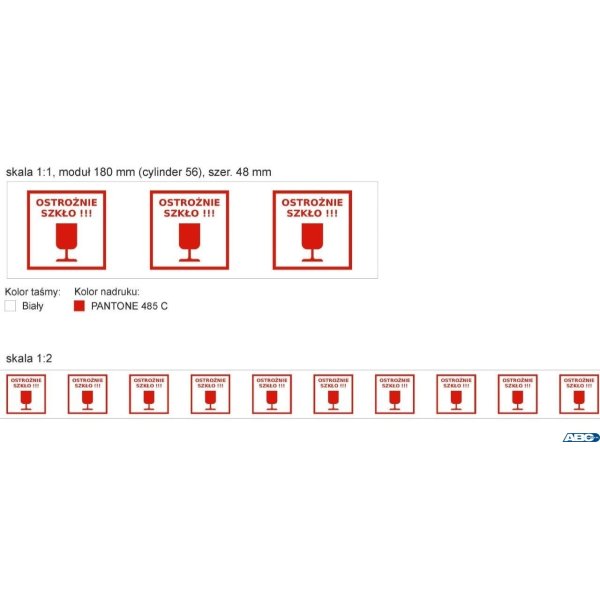 Taśma pakowa z nadrukiem OSTROŻNIE SZKŁO 48x50 SMART