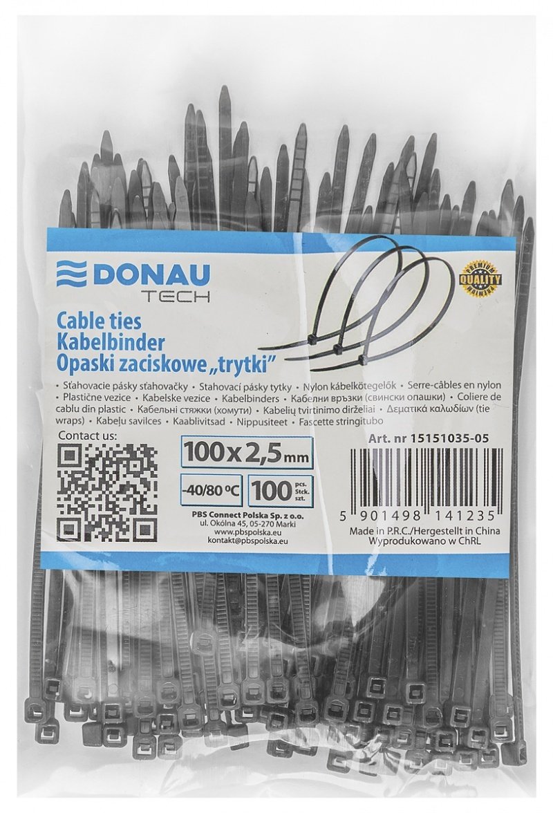 Opaski zaciskowe/trytytki DONAU TECH, 100x2,5mm, 100szt., temp. -40/80, czarne