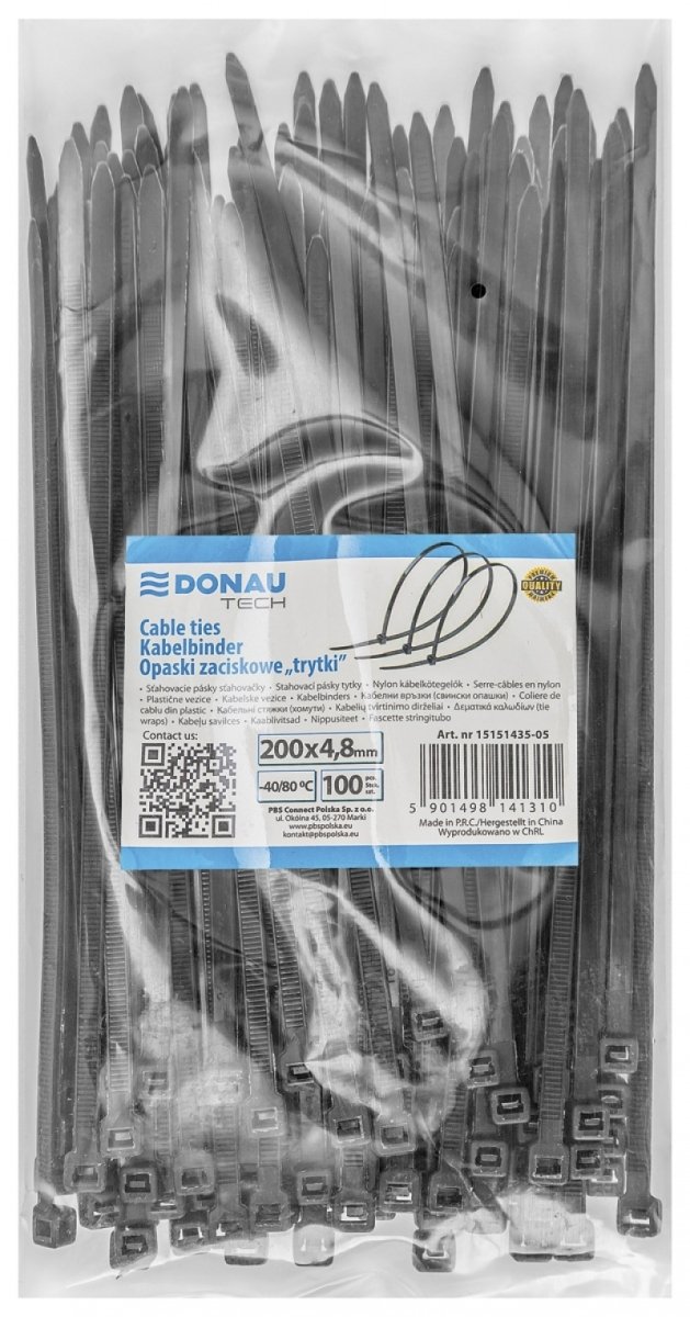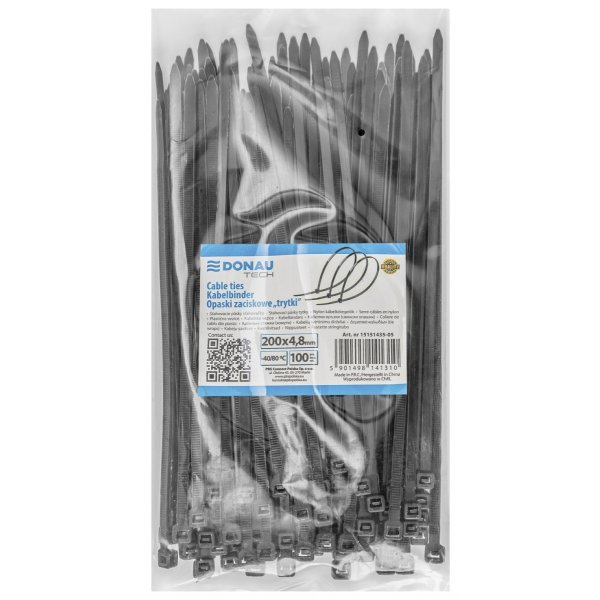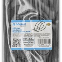 Opaski zaciskowe/trytytki DONAU TECH, 200x4,8mm, 100szt., temp. -40/80, czarne