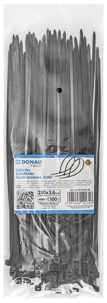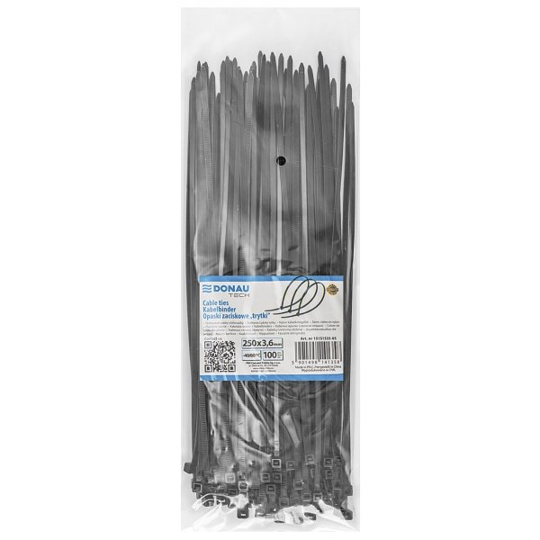 Opaski zaciskowe/trytytki DONAU TECH, 250x3,6mm, 100szt., temp. -40/80, czarne
