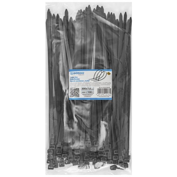 Opaski zaciskowe/trytytki DONAU TECH, 300x7,6mm, 100szt., temp. -40/80, czarne