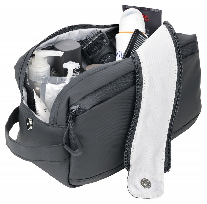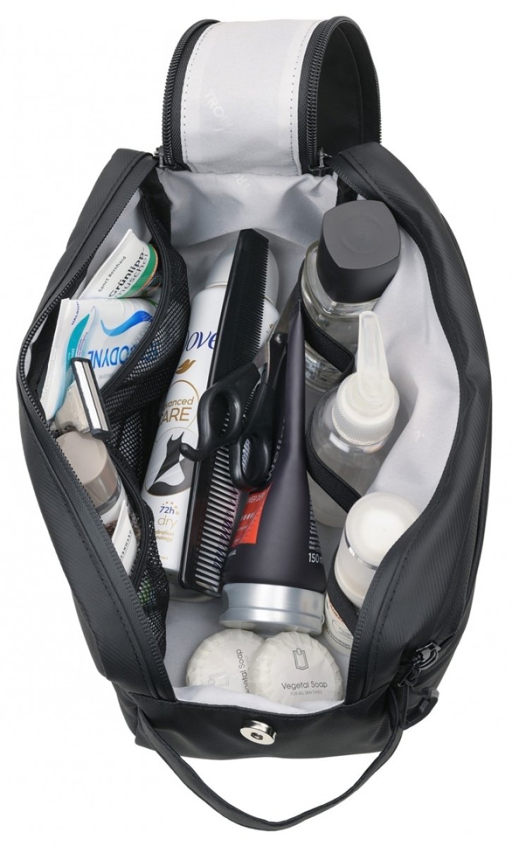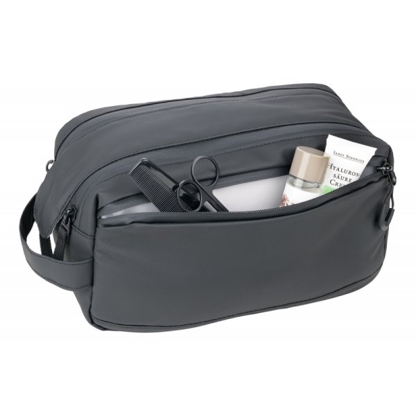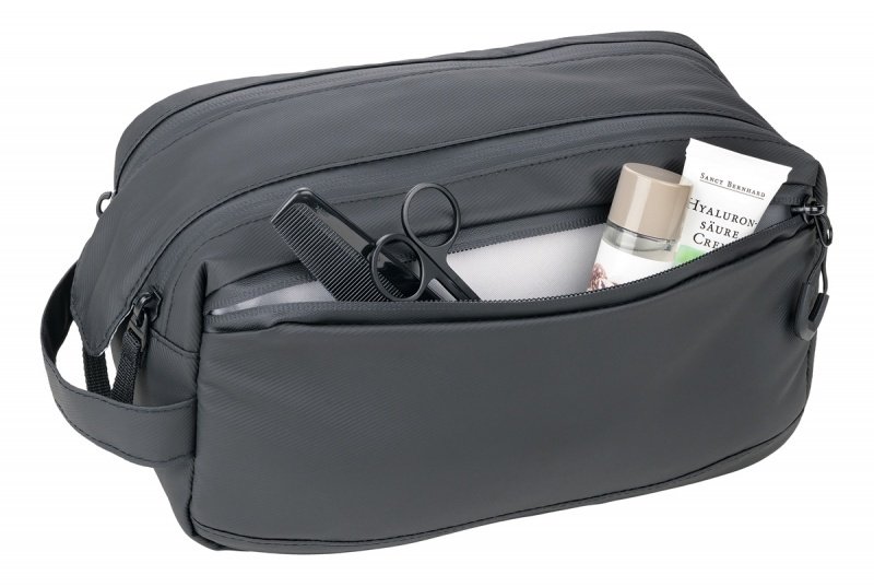 nowa odsłona kosmetyczki: TROIKA Black Washbag 2 z łatwością pomieści wszystkie niezbędne kosmetyki szczotki do włosów, maszynki, makijaż, szampon, produkty do higieny jamy ustnej, kremy z filtrem i wiele więcej — nikt nie chce rezygnować z codziennych wygód w podróży