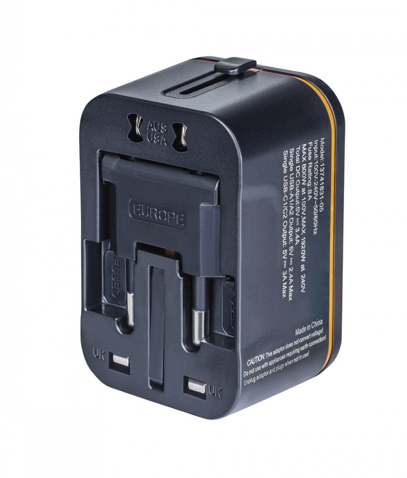 w jednym kompaktowym korpusie znajdują się wysuwane wtyczki EU, UK, USA i AUS oraz nowoczesna technologia, co pozwala szybciej zasilać smartfon, tablet, aparat cyfrowy, konsole do gier, odtwarzacz mp3, czy ultrabook i efektywniej wykorzystać czas w podróży służbowej lub turystycznej