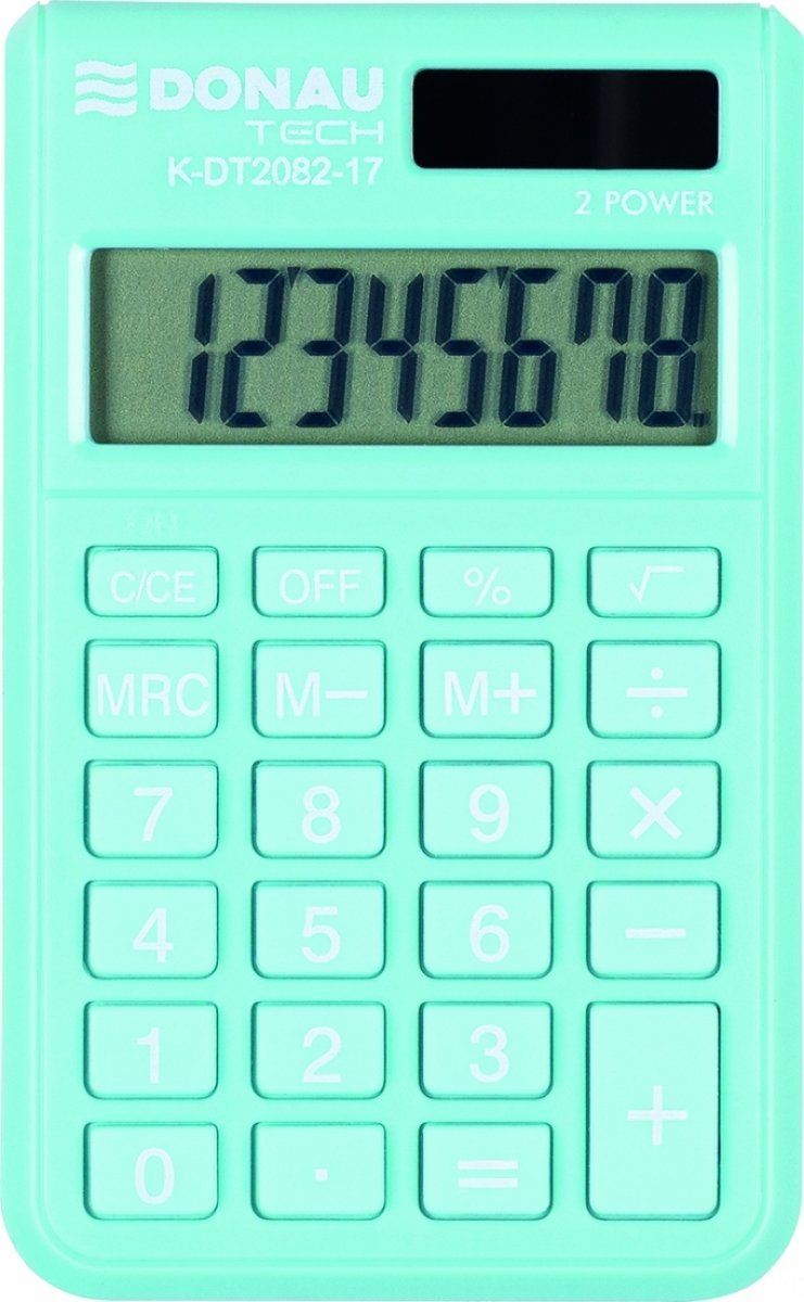 Kalkulator kieszonkowy DONAU TECH, 8-cyfr. wyświetlacz, wym. 97x60x10 mm, jasnoniebieski
